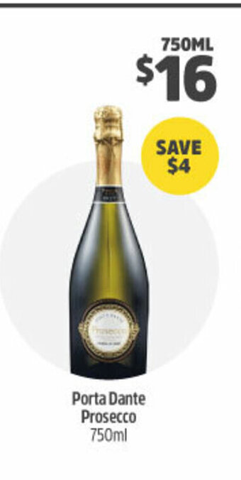 | Porta Dante Prosecco 750ml | Woolworths | $16.00 | 21 July 2021 | 27 July 2021 | |||