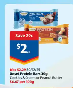 2ALDI Onset protein bars offerOnset protein bars 30 gALDI$2.29$2.00$0.29 Discount04 February 202610 February 2026 View offer