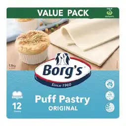 Woolworths Borg’s Puff Pastry offerBorg’s Puff Pastry 1.9 kg Pk 12Woolworths$9.00$8.90$0.10 Discount14 January 202620 January 2026