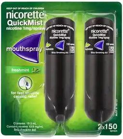 healthylife Nicorette Quit Smoking QuickMist Nicotine Mouth Spray Freshmint 2 x 150 Sprays offerNicorette Quit Smoking QuickMist Nicotine Mouth Spray Freshmint 2 x 150 Sprayshealthylife$79.50$59.63$19.87 Discount03 November 202530 November 2025