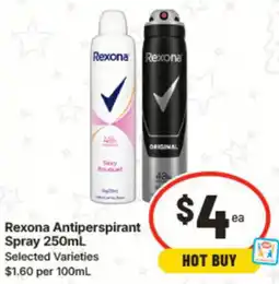 | 2 | Rexona Antiperspirant Spray 250 ml | IGA | $4.00 | 17 December 2025 | 23 December 2025 | View offer | |||