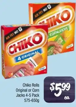 1Farmer Jack's Chiko Rolls Original or Corn Jacks offerChiko Rolls Original or Corn Jacks 575-650 gFarmer Jack's$5.9915 April 202621 April 2026 View offer
