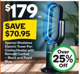 | Spector Bladeless Electric Tower Fan Cooler/Heater with Remote Control - Black and Royal Blue | Woolworths | $179.00 | 12 June 2023 | 04 July 2023 | |||