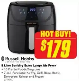 | Russell Hobbs 8 Litre Satisfry Extra Large Air Fryer | The Good Guys | $179.00 | 22 August 2023 | 03 September 2023 | |||