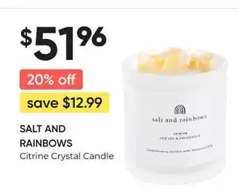 | Salt and rainbows citrine crystal candle | healthylife | $64.95 | $51.96 | $12.99 Discount | 28 November 2022 | 25 December 2022 | |