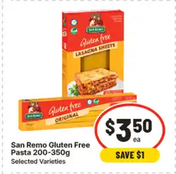 3IGA San Remo Gluten Free Pasta Selected Varieties offerSan Remo Gluten Free Pasta Selected Varieties 200-350gIGA$4.50$3.50$1.00 Discount31 December 202506 January 2026 View offer