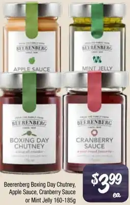 Beerenberg boxing day chutney, apple sauce, cranberry sauce