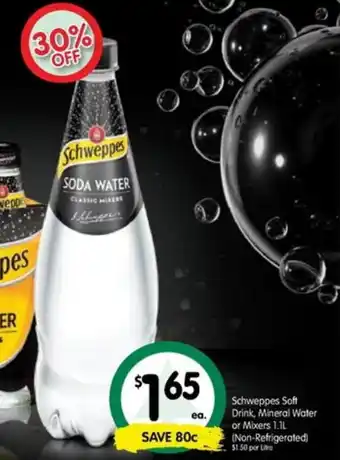 | Schweppes Soft Drink, Mineral Water or Mixer 1.1L | Spar | $1.80 | 01 May 2024 | 07 May 2024 | |||