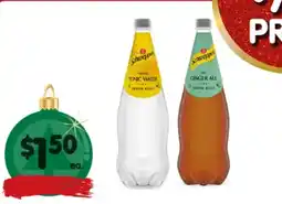 | Schweppes Soft Drink, Mineral Water or Mixer 1.1 l | Spar | $1.50 | 15 January 2025 | 21 January 2025 | |||