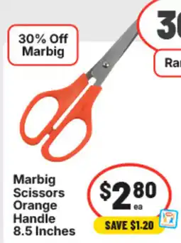IGA Marbig Scissors Orange Handle 8.5 Inches offerMarbig Scissors Orange Handle 8.5 InchesIGA$4.00$2.80$1.20 Discount14 January 202620 January 2026