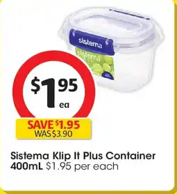 | 1 | Sistema Klip It Plus Container 400mL | Coles | $3.90 | $1.95 | $1.95 Discount | 21 January 2026 | 27 January 2026 | View offer | |