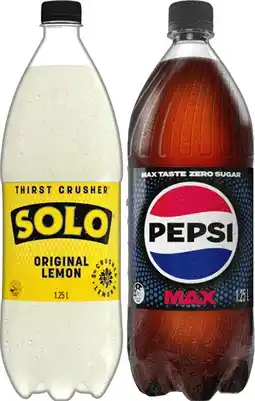 Pepsi or Solo Soft Drink 1.25 Litre