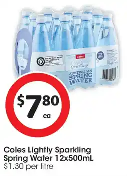 2Coles Coles Lightly Sparkling Water offerColes Lightly Sparkling Water 500 mlColes$7.8014 January 202620 January 2026 View offer