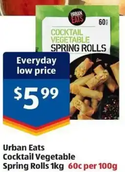 | Urban Eats Cocktail Vegetable Spring Rolls 1 kg | ALDI | $5.99 | 29 April 2026 | 05 May 2026 | |||