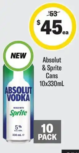 The Bottle O Absolut Vodka & Sprite Premix Range Cans offer