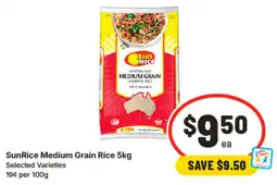 2IGA Sunrice medium grain rice offerSunrice medium grain rice 5 kgIGA$19.00$9.50$9.50 Discount11 February 202617 February 2026 View offer