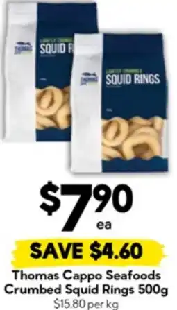 Foodland Thomas cappo seafoods crumbed squid rings offerThomas cappo seafoods crumbed squid rings 1 kgFoodland$21.00$17.60$3.40 Discount10 February 202617 February 2026