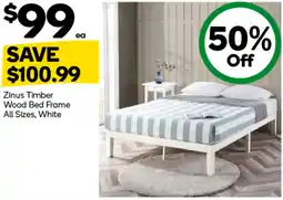 Woolworths Zinus Timber Wood Bed Frame All Sizes, White offer