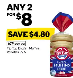 Woolworths Tip Top English Muffins Varieties offerTip Top English Muffins VarietiesWoolworths$8.00ANY 2 FOR $823 December 202531 December 2025