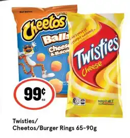 Coles Twisties, Burger Rings or Cheetos 65g-90g offerTwisties, Burger Rings or Cheetos 65g-90gColes$2.70$2.00$0.70 Discount17 December 202514 December 2025