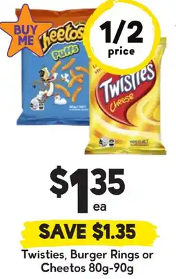 Coles Twisties, Burger Rings or Cheetos 65g-90g offerTwisties, Burger Rings or Cheetos 65g-90gColes$2.70$2.00$0.70 Discount25 December 202521 December 2025