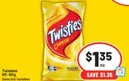 3IGA Twisties Selected Varieties offerTwisties Selected Varieties 65-100gIGA$2.70$1.35$1.35 Discount28 January 202603 February 2026 View offer