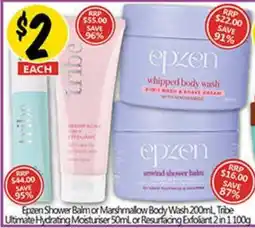| Epzen Shower Balm or Marshmallow Body Wash, Tribe Ultimate Hydrating Moisturiser or Resurfacing Exfoliant 2 in 1 | NQR | $2.00 | 22 April 2026 | 30 April 2026 | |||
