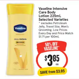 | Vaseline Intensive Care Body Lotion 225mL Selected Varieties | IGA | $4.55 | 26 June 2024 | 02 July 2024 | |||