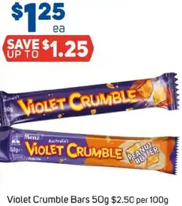 Supa Valu Violet Crumble Medium Bar offerViolet Crumble Medium Bar 50 gSupa Valu$2.50$1.25$1.25 Discount18 March 202624 March 2026