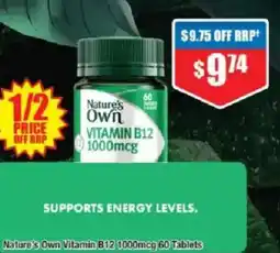 Woolworths Nature’s Own Vitamin B12 1000mcg Tablets Pk 60 offerNature’s Own Vitamin B12 1000mcg Tablets Pk 60Woolworths$19.50$9.75$9.75 Discount19 November 202525 November 2025