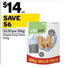 Woolworths Vitapet Dog Treats offerVitapet Dog Treats 80-100gWoolworths$6.00$4.00$2.00 Discount21 January 202627 January 2026