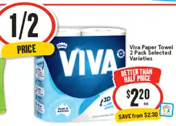 IGA Viva Paper Towel Selected Varieties offerViva Paper Towel Selected Varieties 2 PackIGA$4.50$2.20$2.30 Discount10 December 202507 December 2025