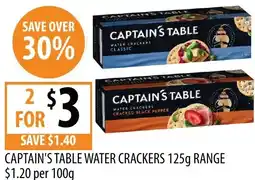 | Captain's table water crackers 125 g | Supabarn | $1.10 | 11 March 2026 | 17 March 2026 | |||