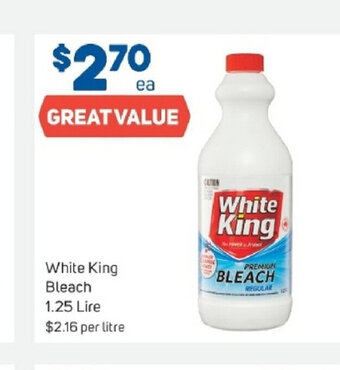 | White King Bleach 1.25 Litre | Foodland | $3.50 | 29 May 2024 | 04 June 2024 | |||