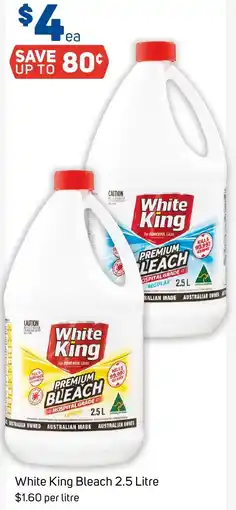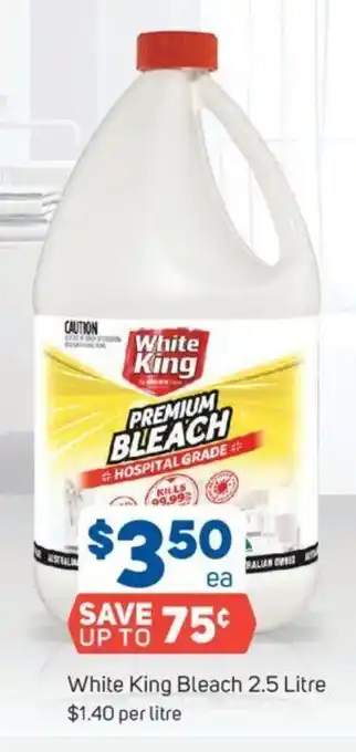 | White King Bleach 2.5 Litre | Foodland | $4.00 | 01 May 2023 | 31 May 2023 | |||