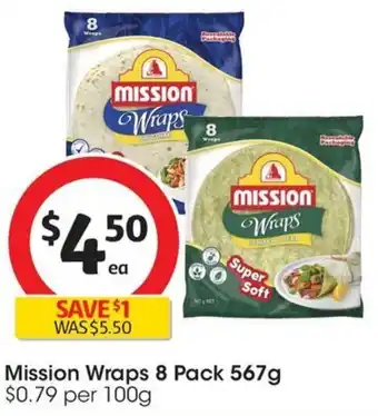 | Mission Wraps 8 Pack 567g | Coles | $4.50 | 08 May 2024 | 14 May 2024 | |||