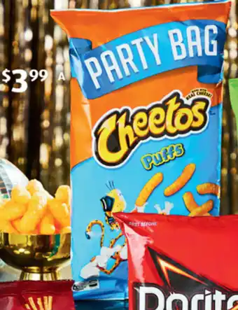This offer is available in various stores, view all products to get the cheapest A Cheetos Puffs Party Bag. If you'd like to find out whether this product has a bigger discount in another store, check the category 'Supermarkets & Grocery Stores'. You may also find these offers interesting: Cheetos, Twisties or Burger Rings Party Bag Varieties, Cheetos, Twisties or Burger Rings Party Bag Varieties & Twisties, Burger Rings or Cheetos.