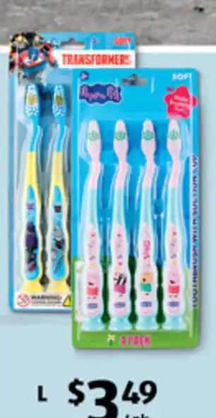 The price of Kid's Licensed Toothbrush can be found at the top of the page, together with the dates during which the offer is available. You can also check the price in the current ALDI catalogue or on the ALDI website. Promotional offers assure you of buying ALDI products at the lowest price.