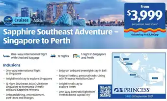 Sapphire Southeast Adventure Singapore to Perth sale and online promotions now live