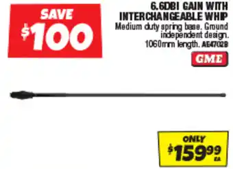 6.6dbi gain with interchangeable whip promotion at Autobarn