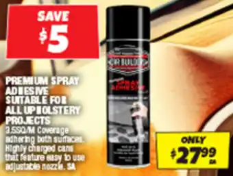 This offer is available in various stores, view all products to get the cheapest Premium spray adhesive suitable for all upholstery projects. If you'd like to find out whether this product has a bigger discount in another store, check the category 'Cars & Bikes'. You may also find these offers interesting: Denture Adhesive, Lynx Fine Fragrance Premium Body Spray Range & Fittydent Super Adhesive for Dentures Tube.