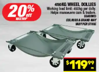 This wheel dollies is currently on special at Autopro. Check out the best deals and enjoy great savings while this product is on sale. Buy wheel dollies online via the Autopro website or grab it at the lowest available price nearby. Catalogueoffers.com.au collects all wheel dollies specials for you. Want to stay informed? Click the bell icon to get a free alert when this product is back on special or part of a new promotion.Frequently asked questions about wheel dollies