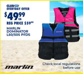 Marlin dominator l50/50s pfds sale and online promotions now live