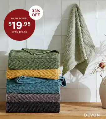 This offer is available in various stores, view all products to get the cheapest Devon. If you'd like to find out whether this product has a bigger discount in another store, check the category 'Home'. You may also find these offers interesting: All seasons quilt, Ultra Soft Towels & Nirvana aluminium shutter panels.