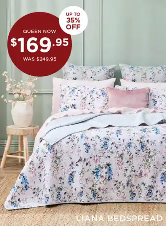 Liana bedspread is currently on sale at Bed Bath N' Table, valid from 23-03-2026 to 26-04-2026. Find more great deals online and compare active offers to get the best price available. At Catalogueoffers.com.au, we list all current Liana bedspread specials so you can plan your shopping wisely. Adjust your list based on current discounts and check back regularly for new promotions.Frequently asked questions about Liana bedspread