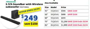 Upcoming Hisense 3.1Ch Soundbar with Wireless subwoofer promotion
