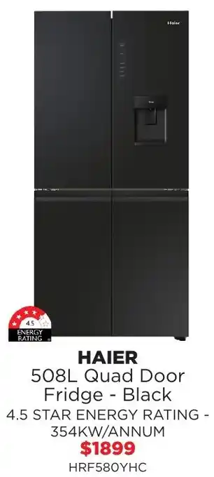 HAIER 508L Quad Door Fridge Black is currently on sale at Bing Lee, valid from 04-12-2025 to 21-12-2025. Find more great deals online and compare active offers to get the best price available. At Catalogueoffers.com.au, we list all current HAIER 508L Quad Door Fridge Black specials so you can plan your shopping wisely. Adjust your list based on current discounts and check back regularly for new promotions.Frequently asked questions about HAIER 508L Quad Door Fridge Black