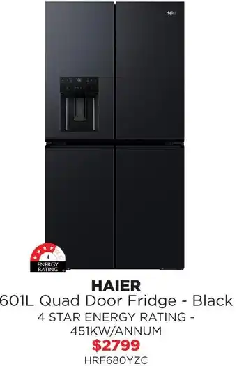 The price of Haier 601l quad door fridge - black can be found at the top of the page, together with the dates during which the offer is available. You can also check the price in the current Bing Lee catalogue or on the Bing Lee website. Promotional offers assure you of buying Bing Lee products at the lowest price.