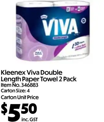 The price of Kleenex viva double length paper towel can be found at the top of the page, together with the dates during which the offer is available. You can also check the price in the current Campbells Wholesale catalogue or on the Campbells Wholesale website. Promotional offers assure you of buying Campbells Wholesale products at the lowest price.
