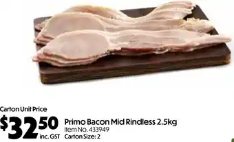 This Primo Bacon Mid Rindless is currently on special at Campbells Wholesale. Check out the best deals and enjoy great savings while this product is on sale. Buy Primo Bacon Mid Rindless online via the Campbells Wholesale website or grab it at the lowest available price nearby. Catalogueoffers.com.au collects all Primo Bacon Mid Rindless specials for you. Want to stay informed? Click the bell icon to get a free alert when this product is back on special or part of a new promotion.Frequently asked questions about Primo Bacon Mid Rindless